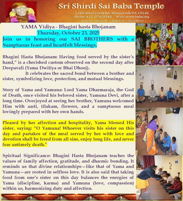Join us in honoring our SAI BROTHERS with a Sumptuous feast and heartfelt blessings.