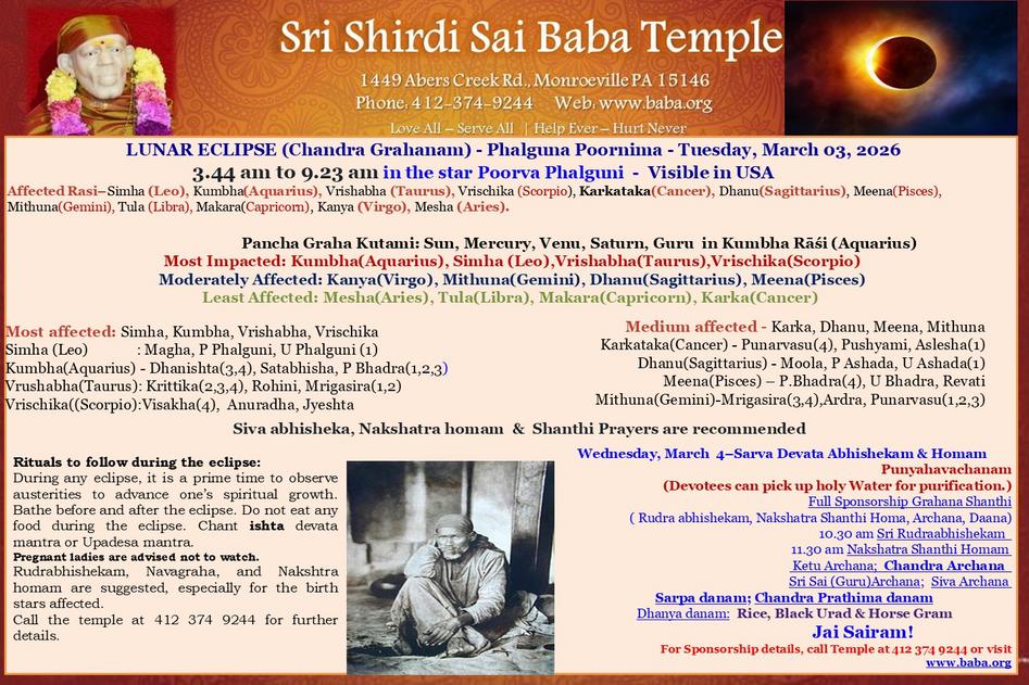 Call temple at 412 374 9244.