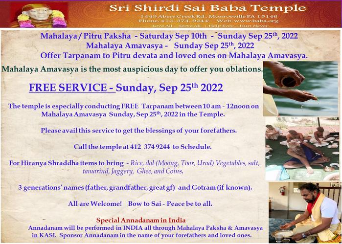Click on the link for MAHALAYA AMAVASYA: Mahalaya paksha Full Sponsorship - $108