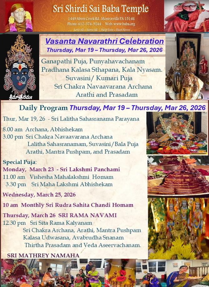 Vasanta Navaratri - Thursday, March 19 - Thursday, March 26 2026